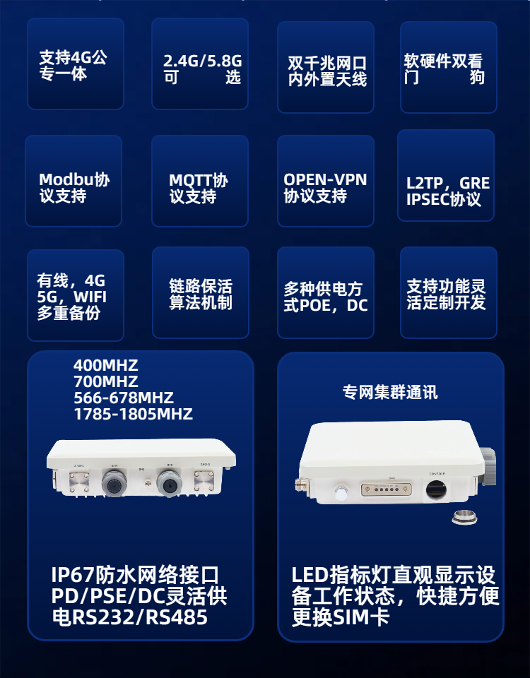 4G专网工业户外CPE,支持400M,600M,700M,1.4G,1.8G,等专用频段
